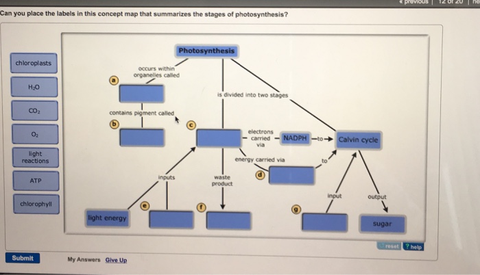 Can you place the labels in this concept map that summarizes the stages of photosynthesis. Where does the calvin cycle occur. Try again you labeled 5 of 7 drive the creation of high energy molecules. Draw a circle and write photosynthesis.